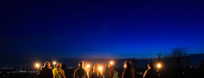 Hinweis: Die Wachslichter können tropfen und eventuell abfärben (Garten-/Arbeitshandschuhe mitbringen). Unempfindliche Kleidung wird empfohlen. Durch die Rauchentwicklung können Hände und Kleidung Rauchgeruch annehmen. Bei Regen oder Wind wird eine Stirnlampe zur Verfügung gestellt.