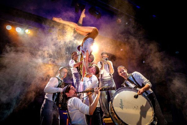 Die Kombination aus spektakulären artistischen Darbietungen und mitreißender Musik kann sich sehen und hören lassen: Die wilde Bordkapelle mahoin nimmt das Publikum auf eine packende Reise von den St. Pauli Landungsbrücken in die Häfen der weiten Welt mit. Mit musikalischer Raffi nesse entdeckt sie die kulturelle Vielfalt zwischen Hamburg und Haiti auf neue und völlig „entstaubte“ Weise.