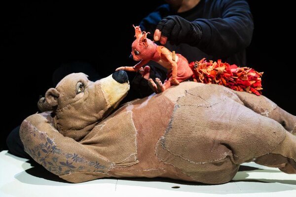 Mit einem schlichten, aber durchdachten Bühnenbild und wenigen Requisiten lassen sie die Welt von Eichhörnchen und Bär lebendig werden.
