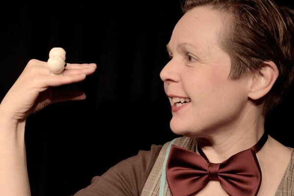 Ihre Hände verwandeln sich dabei in zwei großartige Komödianten, die ein riesiges Spektrum an Einfällen, Gefühlen und Slapstick präsentieren. Mit großem spielerischem Geschick lässt sie die kleine Bühne zu einem großen Theatererlebnis werden und bezieht die kleinen und großen Zuschauer:innen in ihr Spiel ein.