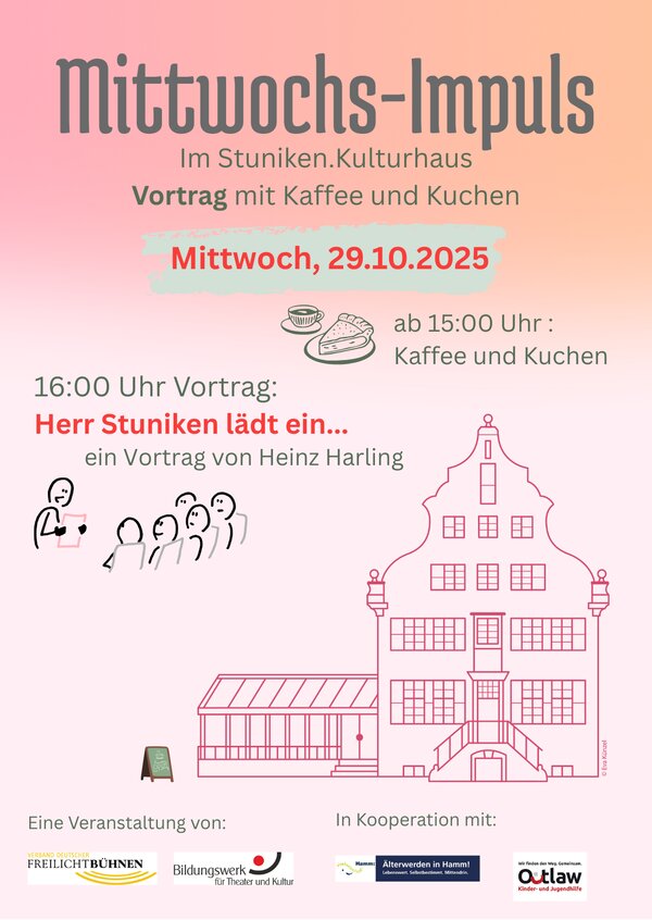 Den Auftakt dieser Veranstaltungsreihe macht Heinz Harling, mit einem Vortrag über das Stuniken Haus und seinen Erbauer Johann Bernhard Stuniken.