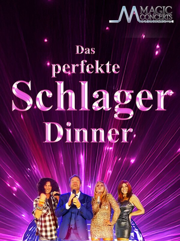 Freuen Sie sich auf einen stimmungsvollen Abend voller unvergesslicher Melodien und nostalgischer Gänsehautmomente: Beim perfekten Schlager-Dinner erleben Sie die größten Hits von Udo Jürgens, Howard Carpendale, Wencke Myhre, Marianne Rosenberg, Wolfgang Petry, Andrea Berg, Helene Fischer – und vielen weiteren Größen des deutschen Schlagers.