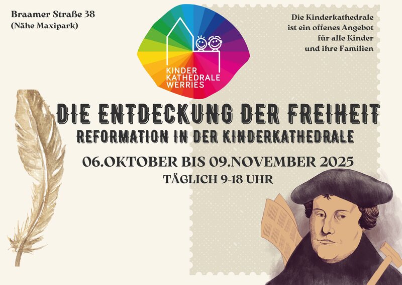 Die Entdeckung der Freiheit - Reformation in der Kinderkathedrale ist ein offenes Angebot vom 06.10.-09.11. 2025, täglich von 9-18 Uhr.